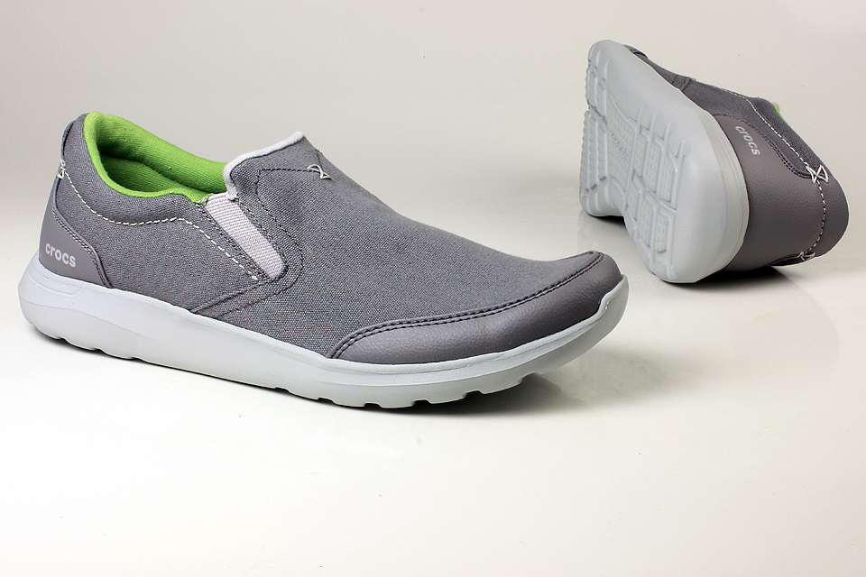 This is quite possibly the perfect casual shoe — with relaxed good looks, capable, versatile style and Triple Crocs comfort™.  The stretch canvas uppers move with you, and the stretch gore panels make these slip-ons easy to get on and off while delivering a comfortable, secure fit. We’ve added memory foam pillows inside for that sink-into-it softness right when you step in. And as the day goes on, the comfort keeps coming with a supportive foam footbed and a Croslite™ foam outsole. Try them on and feel the difference.  Men's Crocs Kinsale Slip-on details:Stretch canvas uppers with synthetic leather overlay on toe and heelTwin stretch gore panels for easy on, offRelaxed, go-anywhere style and attitudeTriple Crocs comfort™: memory foam pillows on top of a foam footbed, all riding on a Croslite™ foam outsole
